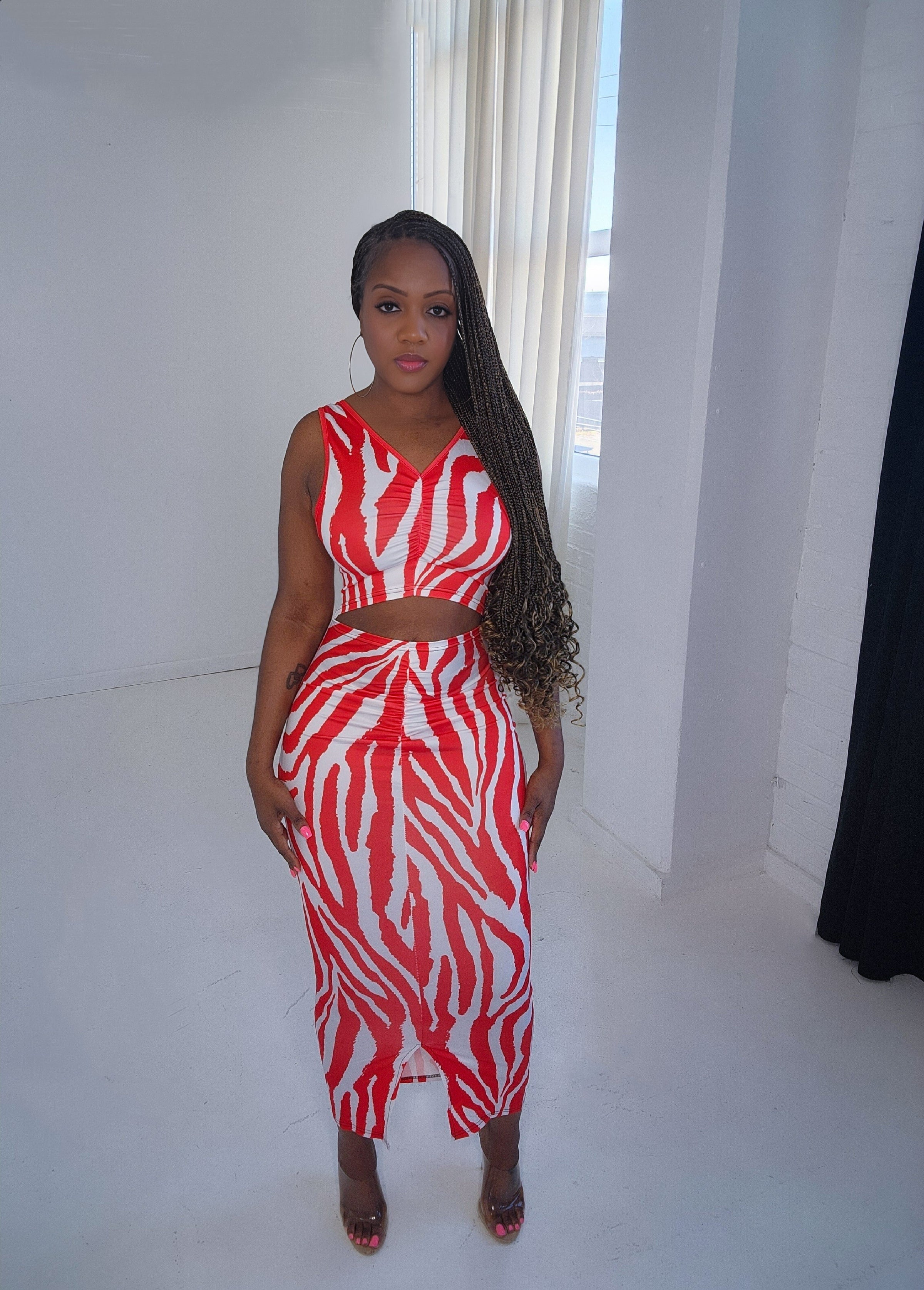 Two way reversible printed cutout maxi dress. Dress can be worn two ways/Front/Back.